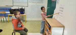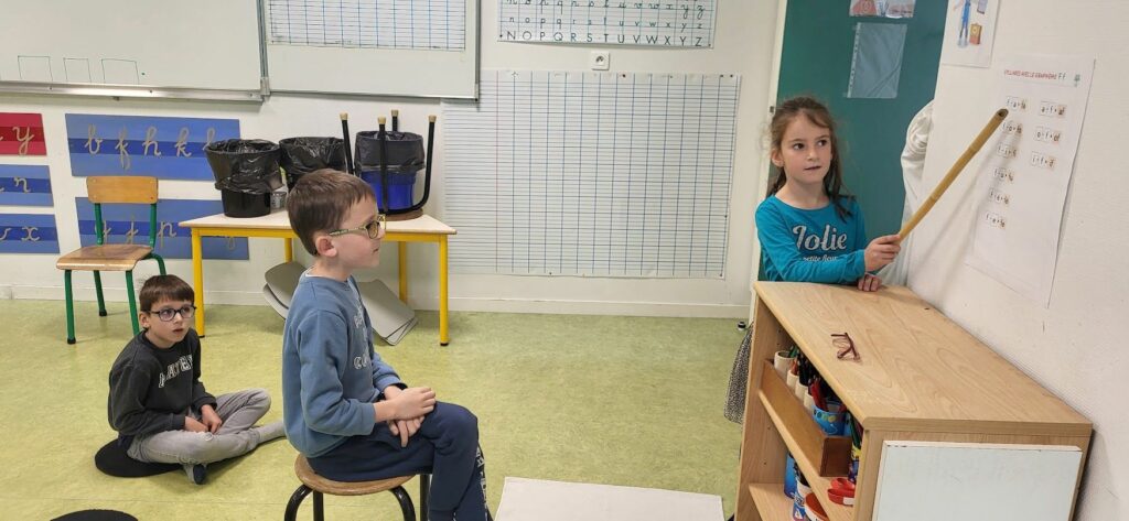 -les CE1 ont travaillé sur les valeurs de la lettre “g” et ont lu des syllabes avec la lettre “g”.